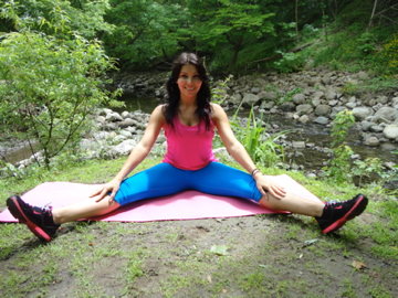 (B) Sitting Hamstring Stretch, sitting in a V-shape position, both legs straight out at a 90-degree angle, lean towards one side reaching towards your foot, ankle or knee. Hold for 15-30-seconds. Repeat sides.