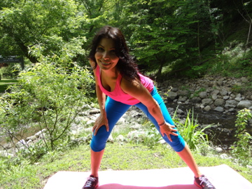 - The Sumo Stretch! This stretch is perfect for those who spend hours sitting or for those who are experiencing tightness in their shoulders, upper or lower back. Stand with legs wide apart. Bend at the knees and forward at the hips while the hands are placed on the inside of the knees. Take one shoulder and dip it forward as your gently twist your torso in one direction. Keep the arm straight as you gently feel a stretch in your shoulder blade and thoracic spine. Add a deep breath and hold for 10-15-seconds. Repeat in the opposite direction ad several times throughout the day. This stimulates blood flow to your intercostal and thoracic muscles, an area that holds a lot of tension.